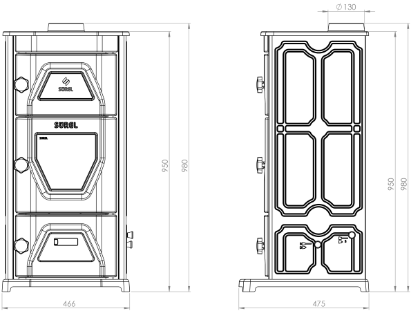 - Диаметр дымохода -130 мм